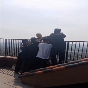 业主楼顶欲轻生,保安发现速搭救